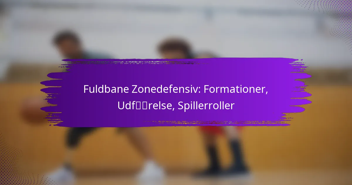 Full-court zone defense anvender forskellige formationer for effektivt at lægge pres på modstanderholdet og begrænse deres scoringsmuligheder. De vigtigste formationer inkluderer 2-3 zone, 3-2 zone og 1-2-2 zone, hver med unikke strukturer og strategier tilpasset til at forstyrre offensive spil.