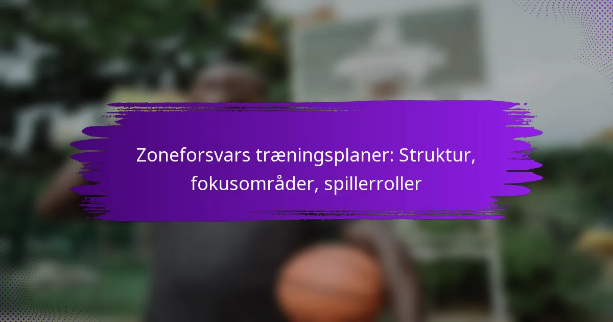 Zoneforsvar er en strategisk tilgang i basketball, hvor spillere vogter bestemte områder af banen i stedet for individuelle modstandere, hvilket fremmer teamwork og rumlig bevidsthed. En velstruktureret træningsplan for zoneforsvar er essentiel og inkorporerer specifikke øvelser, der fremhæver spillerroller og ansvar, samtidig med at der lægges vægt på nøglefokusområder som kommunikation, positionering og rotationer. Ved at prioritere disse elementer kan hold forbedre deres defensive sammenhold og effektivitet under kampene.